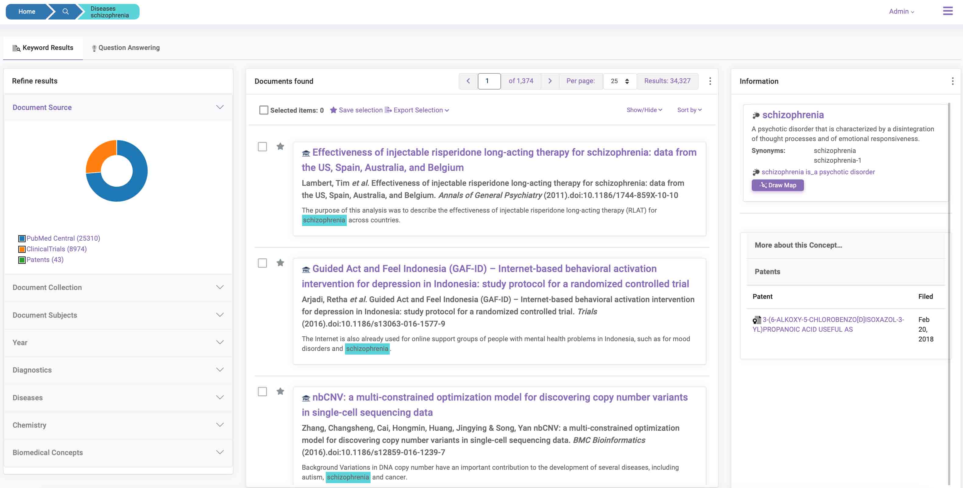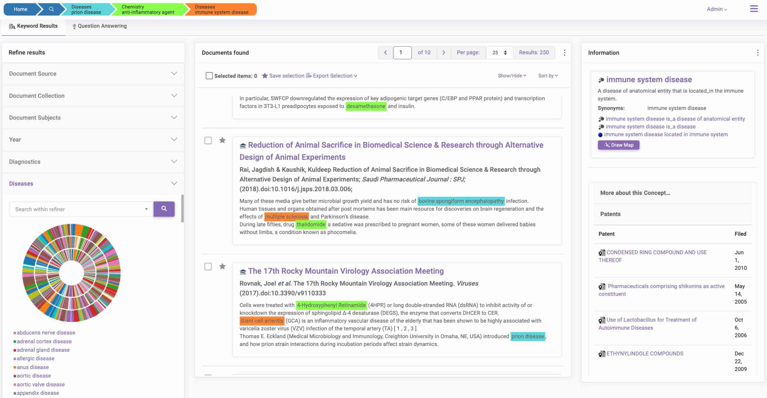 Intuitive user interface answering R & D questions across proprietary and public sources simultaneously