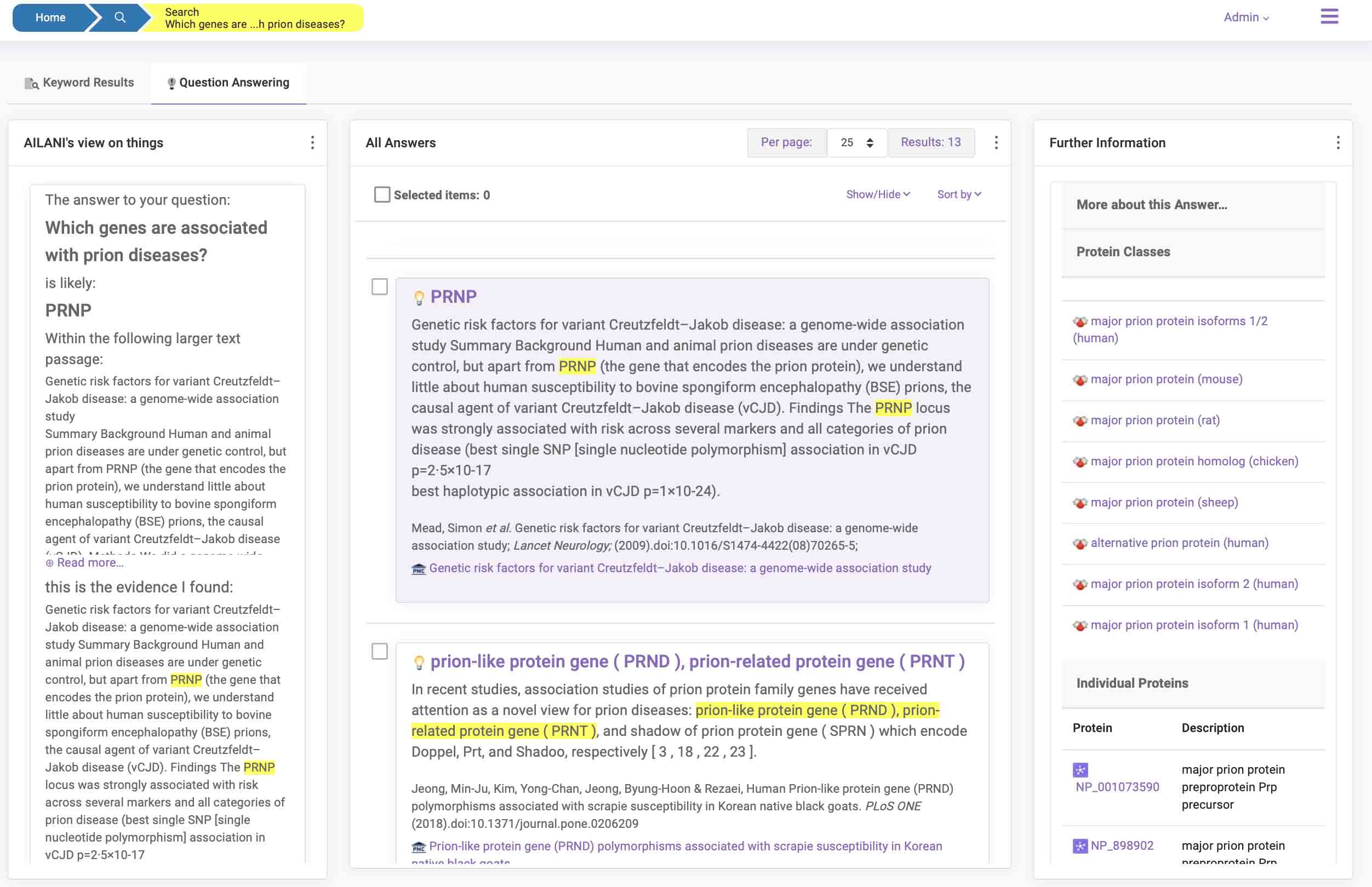 By integrating resources such as decades-old data with the latest free-form text news streams AILANI enables real-time semantic analysis of breaking news with respect to specific customer data and information sources. Originally designed as software for the life science industry, AILANI can also be used in other sectors and can be easily adapted to suite user requirements.